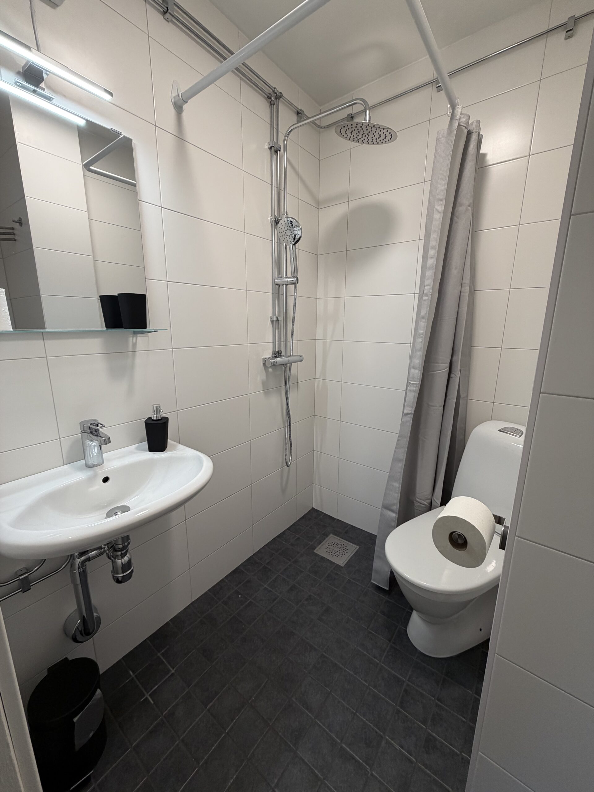 Hos oss har du tillgång till ett kök som erbjuder låsbara utrymmen både i kyl och för torrvaror, så att du enkelt kan laga mat och äta när det passar dig – tidigt, sent eller i lugn och ro.