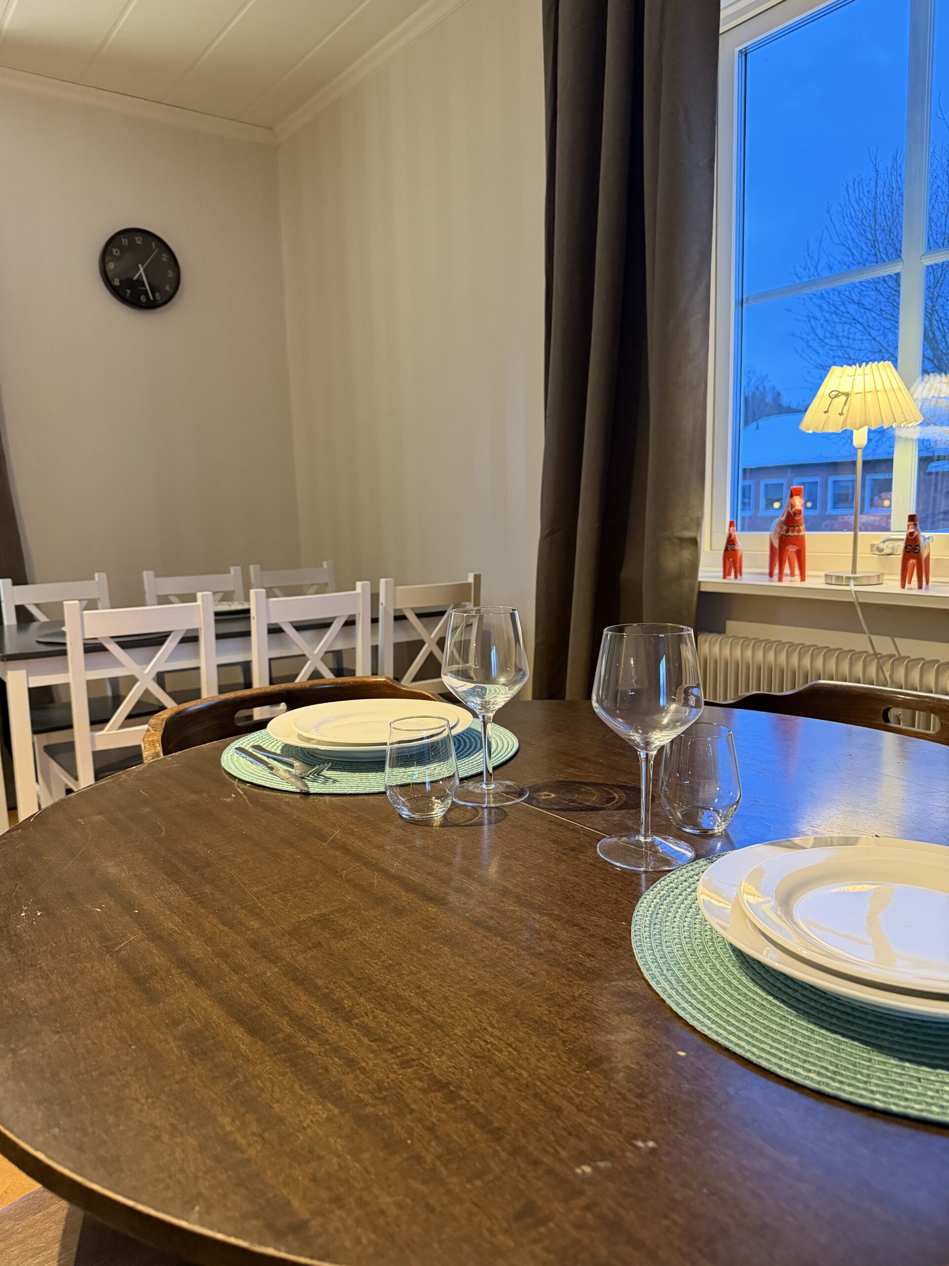 Matsalen rymmer 16 personer samtidigt, vilket innebär att ingen behöver stressa eller följa fasta mattider.
