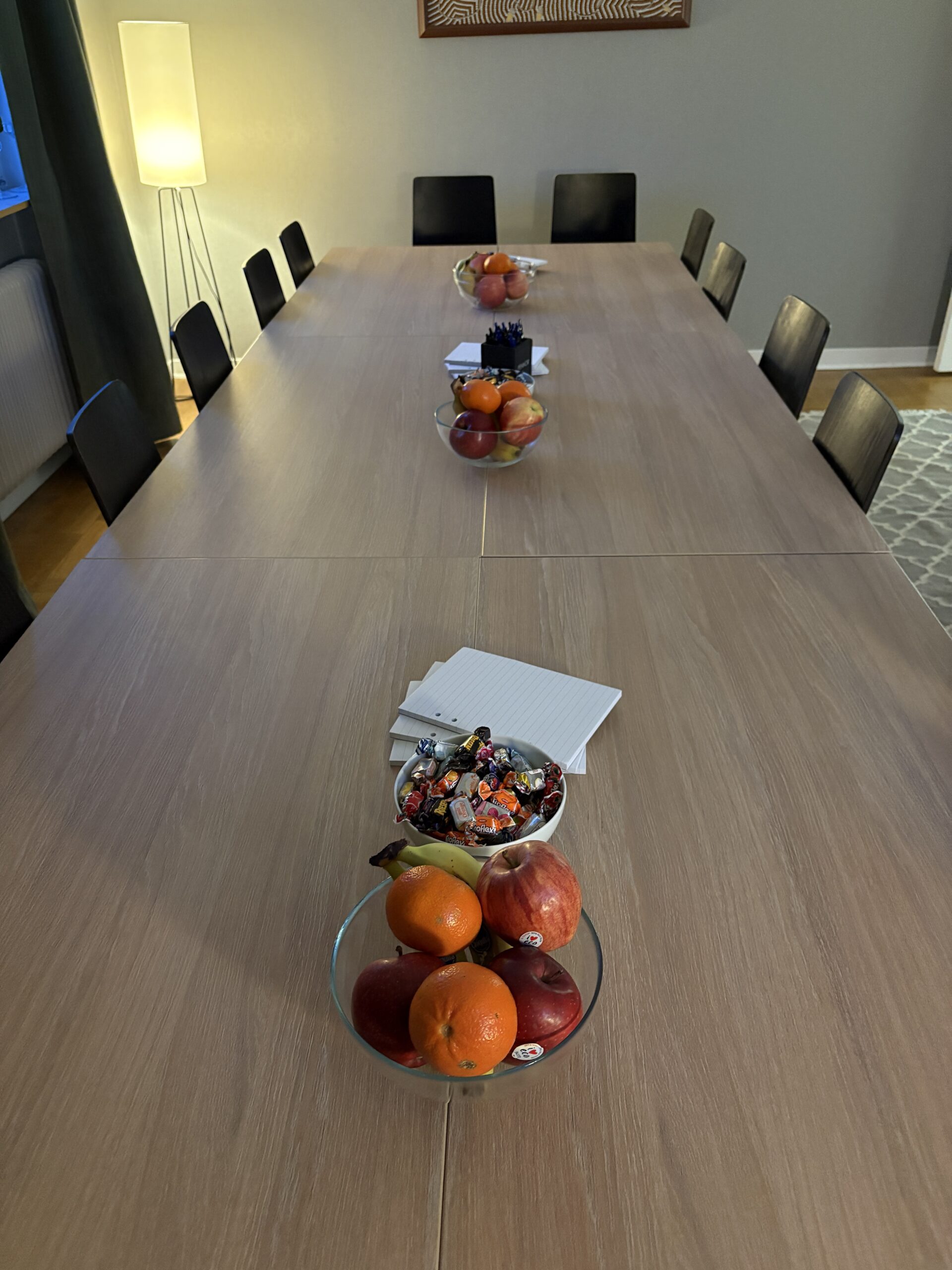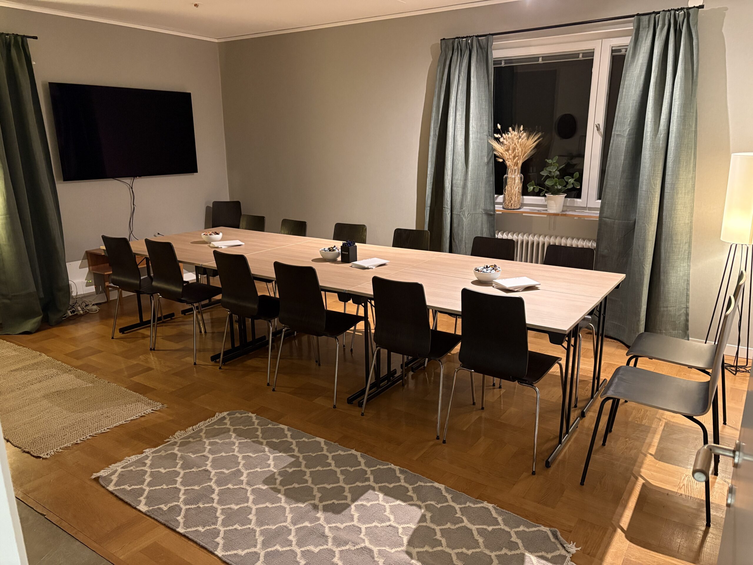 Hos oss kan du även boka ett konferensrum för 12-14 personer. Koppla upp er mot en 65 tum skärm för presentationer. Boka även fika/kaffe/godis eller det ni vill ha i konferensrummet för bästa produktivitet (Konferensrum ring för bokning)